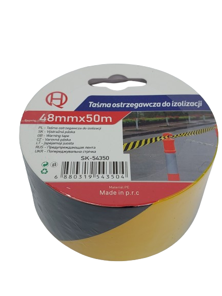 Įspėjamoji juosta juoda-geltona 48mm.x50m.