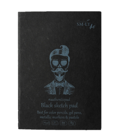 Juodas popierius su lengvai grūdėta tekstūra. Labiausiai tinka spalvotiems pieštukams, geliniams rašikliams, metalic spalvų markeriams, pastelėms. Vidinis popierius yra be lignino ir turi FSC sertifikatą. Su natūraliu spalvoto kartono viršeliu ir kieta nugarėle. Ilgoji kraštinė klijuota.