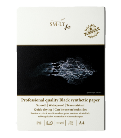 Lygus, neperšlampamas, neplyštantis, riebalams atsparus, greitai džiūstantis sintetinio popieriaus padas. 100% be medžių. Geriausiai tinka žymekliams, alkoholio rašalui ir kitoms technikoms. Vidinis popierius gali būti naudojamas iš abiejų pusių. Klijuotas, su kietu galine dangteliu.