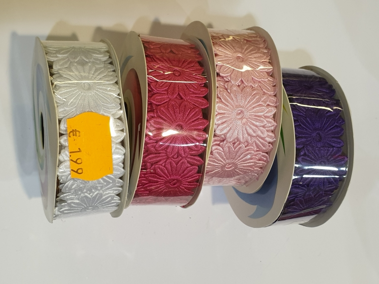 Juostelė dovanoms 2,5cm gėlytėmis įv.spalvų