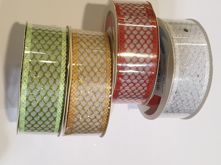 Juostelė dovanoms 2,5cm tinkleliu įv.spalvų