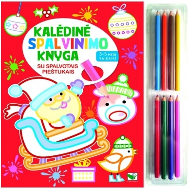 Kalėdinė spalvinimo knyga su spalvotais pieštukais, 3-5 metų vaikams.