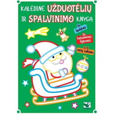 Kalėdinė užduotėlių ir spalvinimo knyga su lipdukais ir kartoninėm figūrom.