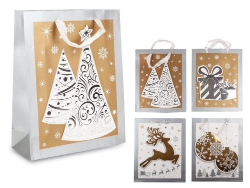 Kalėdinis dovanų maišelis pilkas su auksinėm detalėm 32x26x10cm
