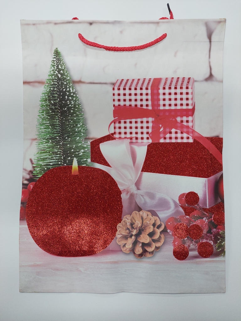 Kalėdinis dovanų maišelis raudonu blizgučiu 30x40