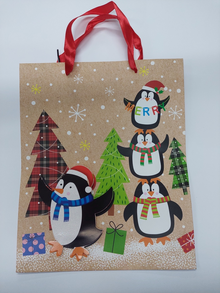 Kalėdinis dovanų maišelis rusvu pagrindu 26x32