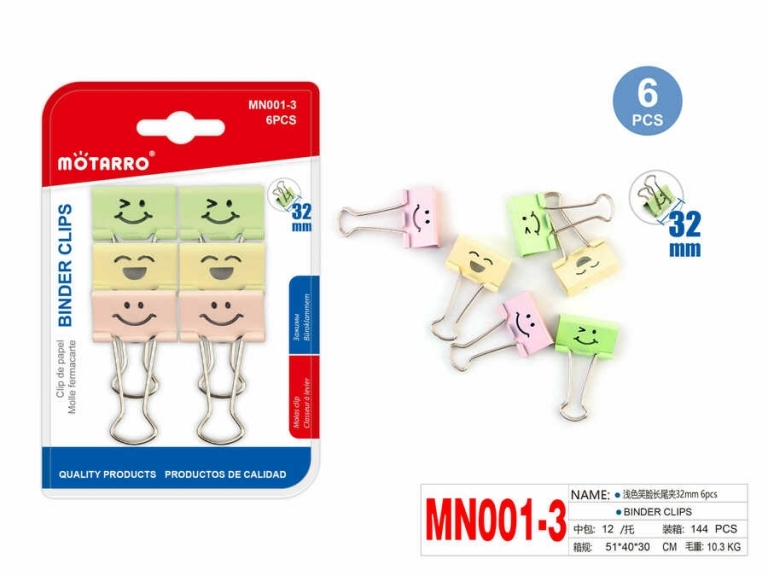 Kanceliariniai spaustukai 6vnt 32mm spalvoti MOTARRO
