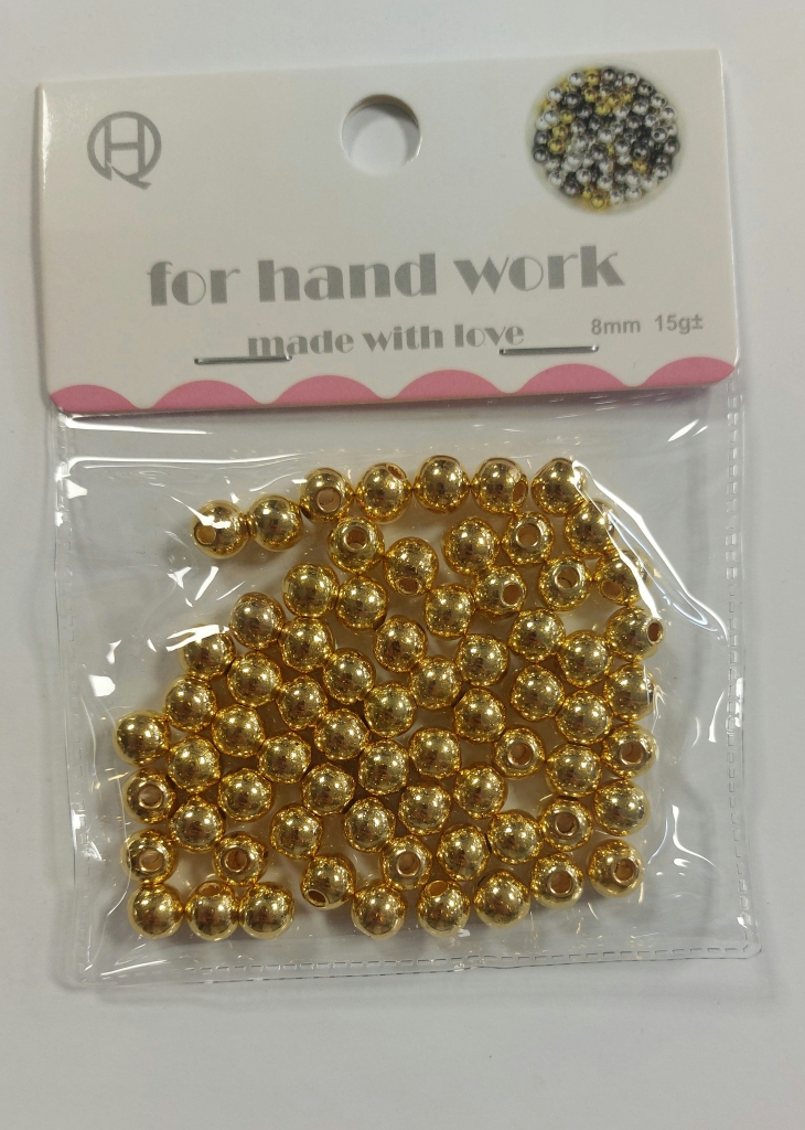 Apvalūs 8mm karoliukai auksinės spalvos – tai puikus pasirinkimas kiekvienam, norinčiam pridėti elegancijos ir šilumos savo rankdarbiams ar papuošalams. Šie karoliukai ne tik džiugina akį savo blizgesiu, bet ir suteikia galimybę sukurti išskirtinius, unikalius kūrinius.
