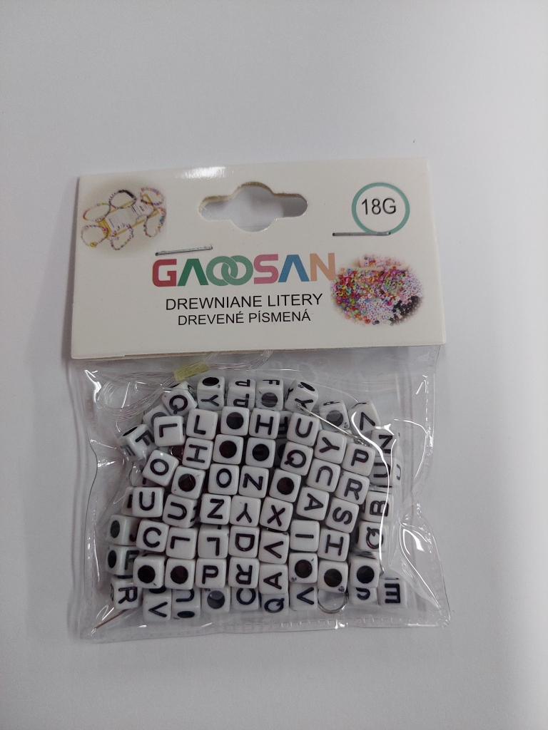 Karoliukai apyrankėms verti kubeliai su raidėmis baltos sp. 18 g.