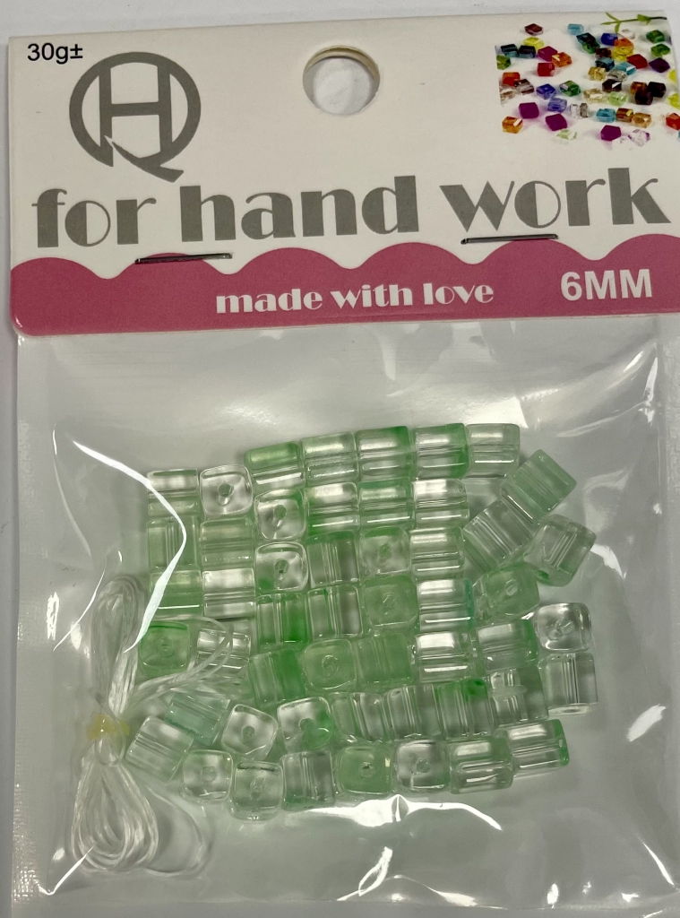 Karoliukai apyrankių vėrimui 6mm. šv, žalios sp. skaidrūs 30g.