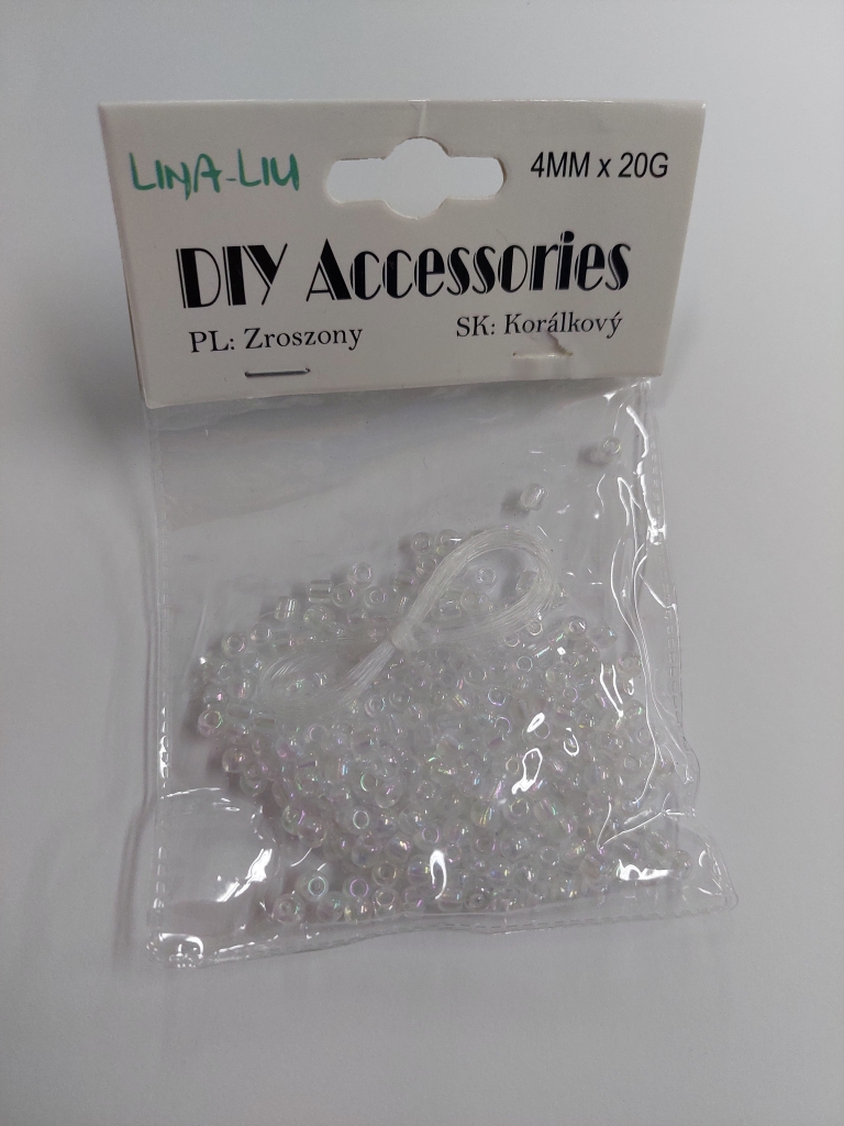 Karoliukai rankdarbių gamybai 4mm.x20g. skaidrios sp.