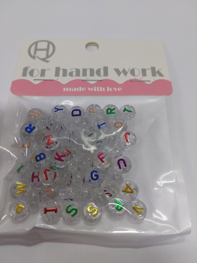 - Raidės: Kiekvienas karoliukas turi unikalią raidę, todėl galėsite sukurti žodžius ar inicialus.