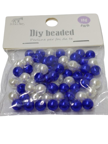 Karoliukai vėrimui baltos ir mėlynos spalvos – 8 mm, 18 g