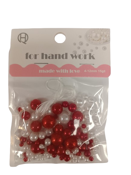 Karoliukai vėrimui įv. dydžių balti, raudoni 15gr