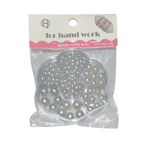 Karoliukų rinkinys baltos sp. įv.dydžių