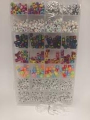 Karoliukų rinkinys su raidėmis dežutėje įv. sp