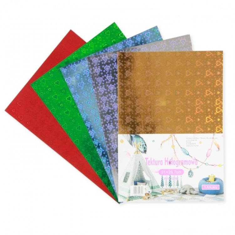 Kartonas dekoratyvinis A4 5 lapai, MIX Hilografinis, širdelės PENWORD