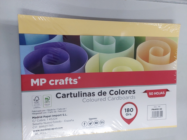 Kartonas MP geltonos sp. A4 180gr 50l.