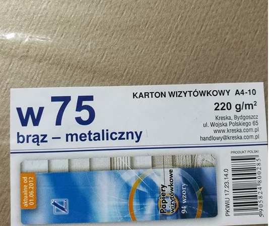 Kartonas vizitinėms kortelėms A4, 10 lapų 250g W75 bronzos spalva metalikas KRESKA