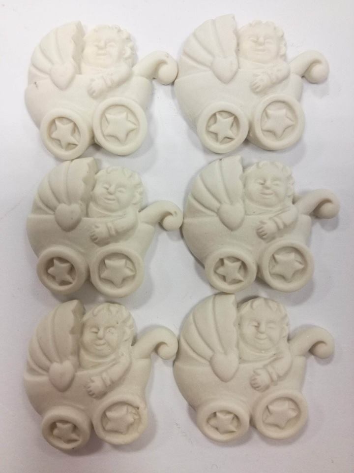 Keramikinis vežimėlis 6vnt dekupažui, baltos spalvos, tinka kaip dekorui ar dovanai.