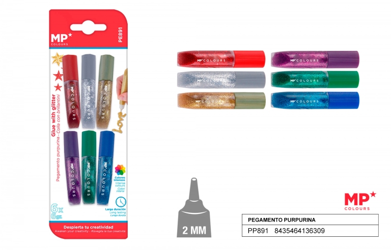 Klijai rankdarbiams su blizgučiu 6 sp.
