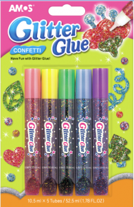 Klijai su blizgučiais "Confetti", 5 spalvų po 10,5ml AMOS