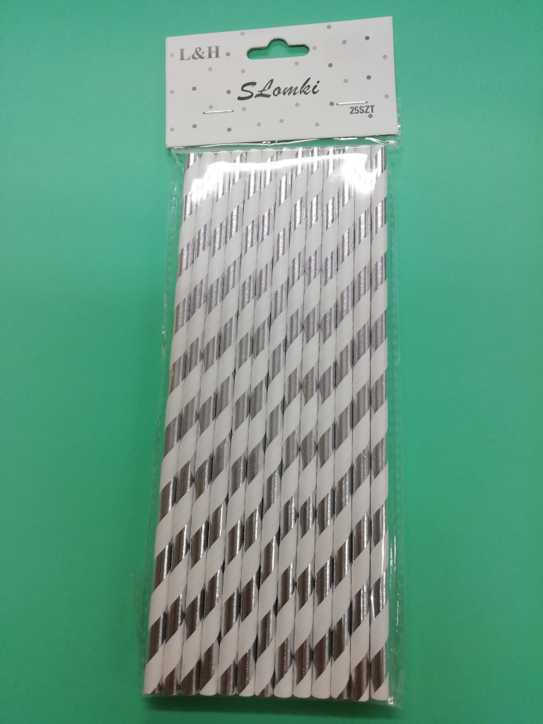 Kokteilių šiaudeliai 25vnt, dryžuoti sidabro spalvos