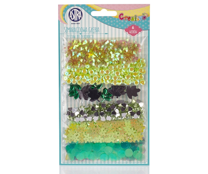 Konfeti-karoliukai dekoravimui 6 formų žalsvos spalvos ASTRA