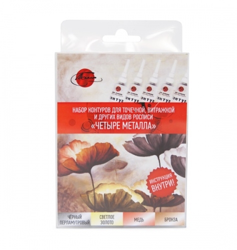 Kontūrų rinkinys dekoravimui, taškiniai tapybai "Keturi metalai" 4 vnt.