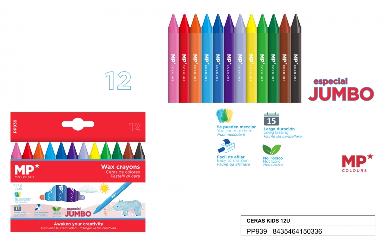 Kreidelės vaškinės 12 sp.Jumbo Kids PP939