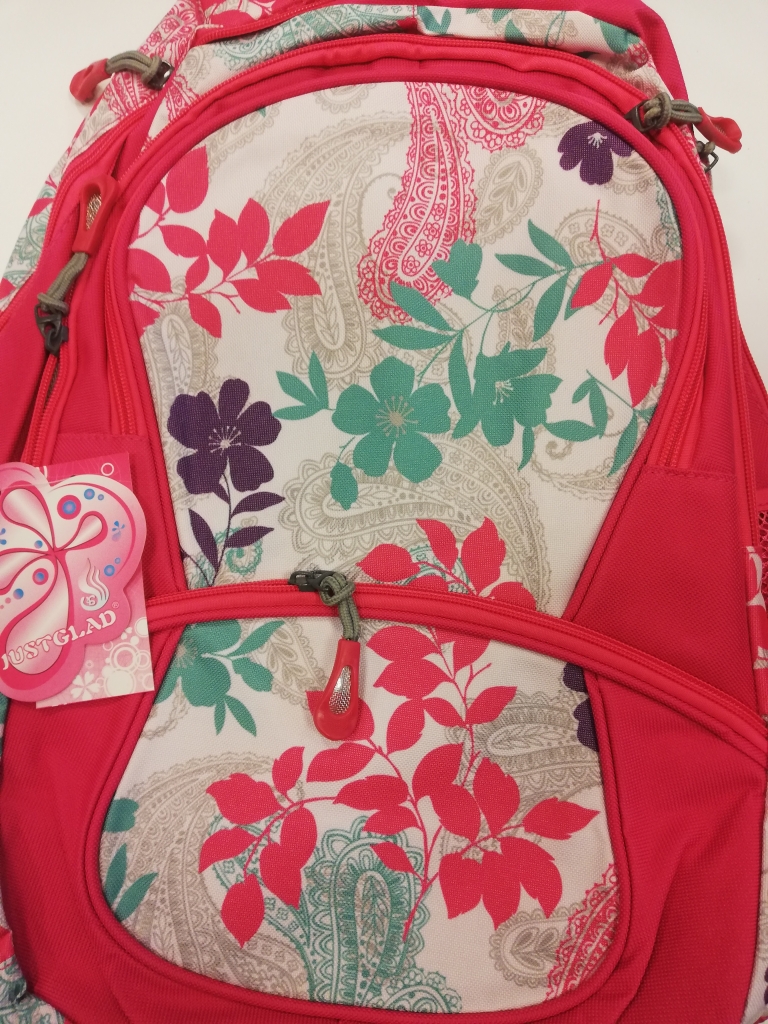 Kuprinė, marga, 3 skyrių su užtrauktukias.