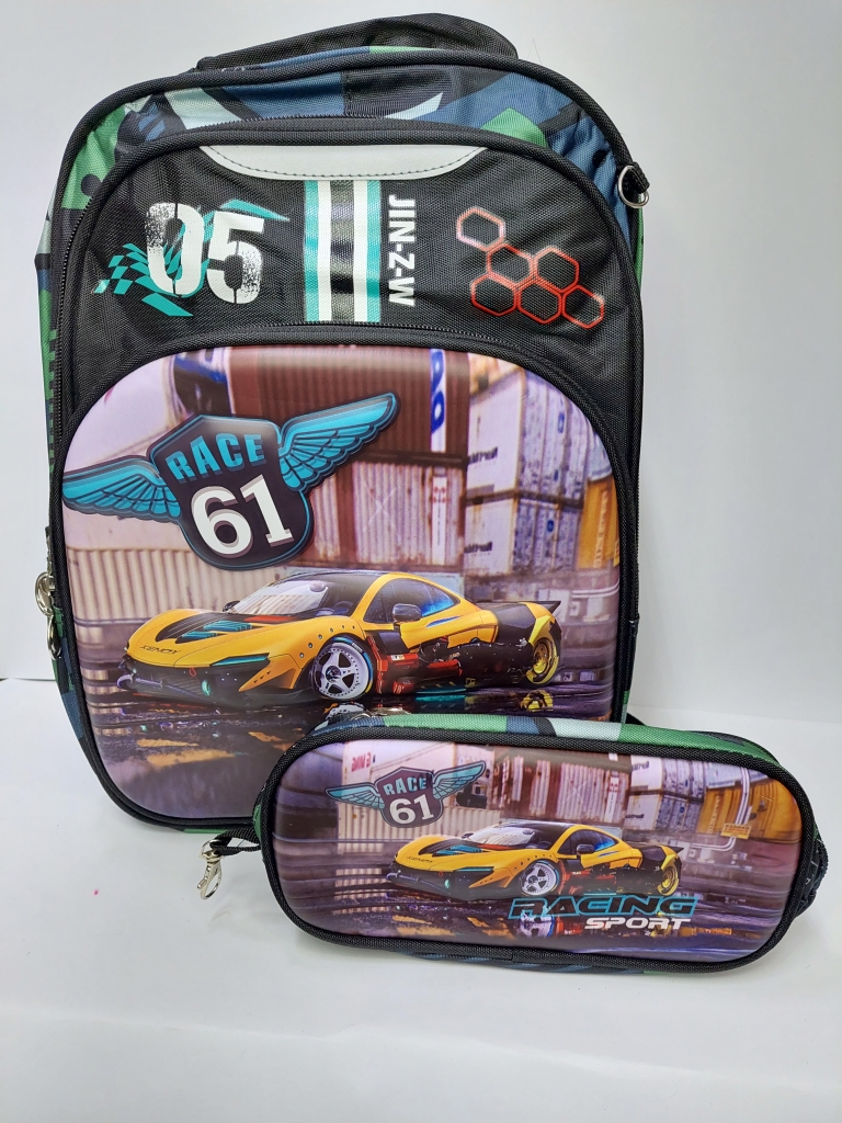 Kuprinė + penalas LENKTYNINIS AUTOMOBILIS juodos sp. 38x28x15cm