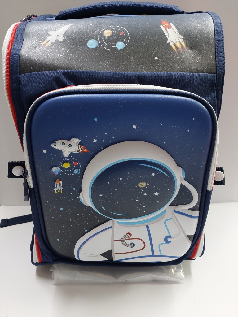Vaikiška Mokyklinė Kuprinė KOSMOSAS – Stilius, Patogumas ir Praktiškumas Mokyklai! Kuprinė melynos spalvos, su paveikslėliu.