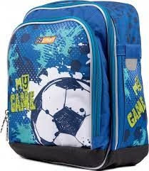 Mėlynos spalvos su futbolo kamuoliu, dviejų skyrių.