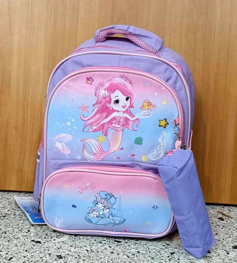 Marga su undinėlės paveikslėliu, trijų skyrių su užtrauktukais. Komplekte penalas.