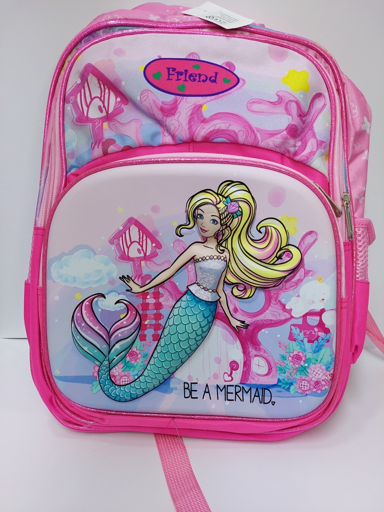 Rausva su undinėlės paveikslėliu, trijų skyrių su užtrauktukiais.