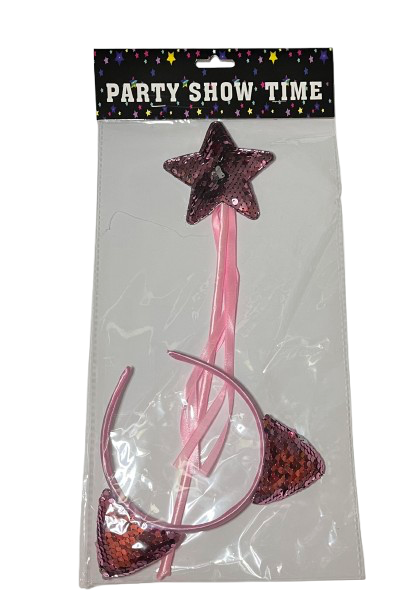 Lankelis su ausytėmis ir burtų lazdelę, ružava,balta spalvos