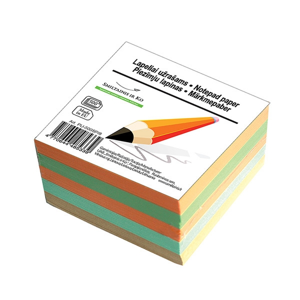 Lapeliai užrašams 8 x 8 cm, 500 lapų, įvairių spalvų