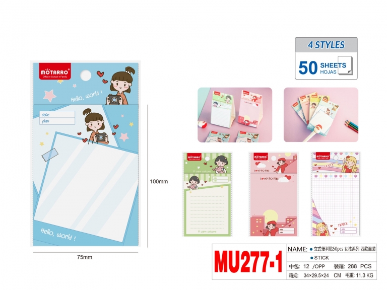Lapeliai užrašams linija 50lapų 100x75mm MERGAITĖ MOTARRO