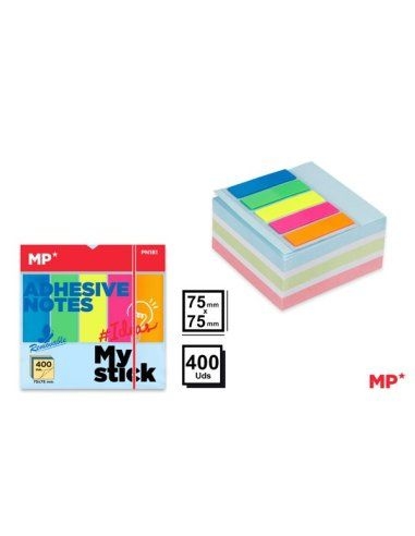 Lapeliai užrašams lipnūs MP 75x75mm 400vnt