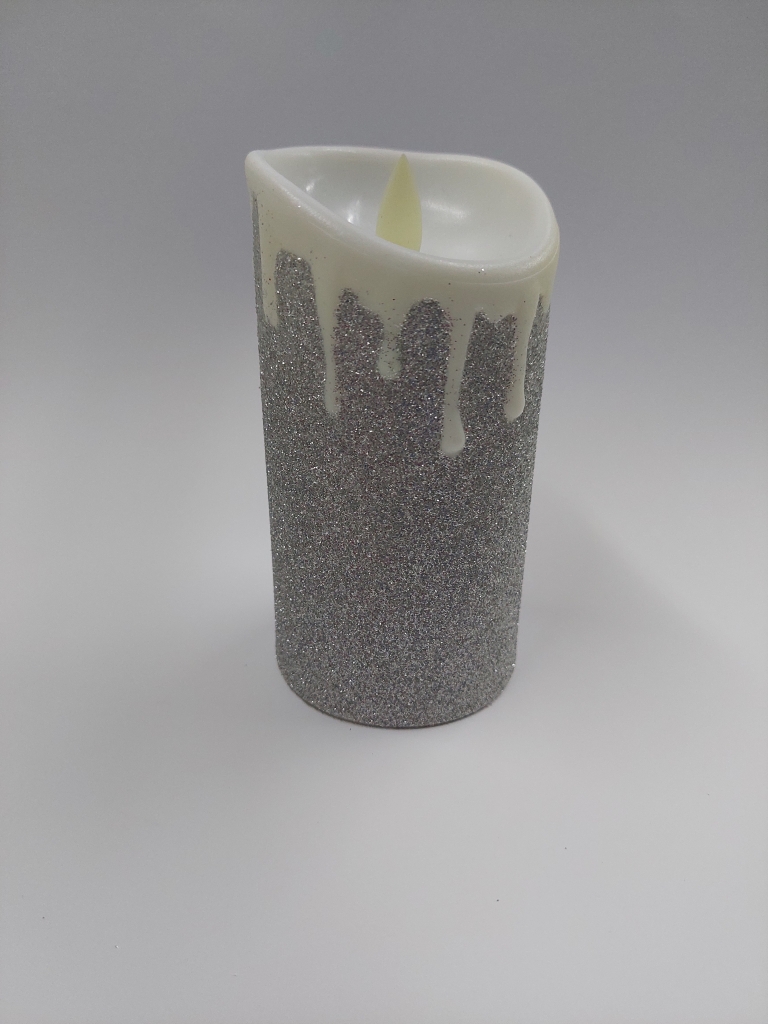 LED žvakutės, dekoruotos sidabriniais, auksiniais blizgučiais, dedasi 2xAAA baterijos