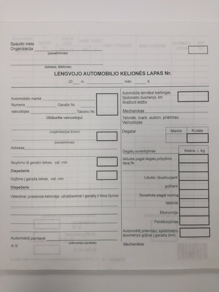 Lengvojo automobilio kelionės lapai 8col. be numeracijos