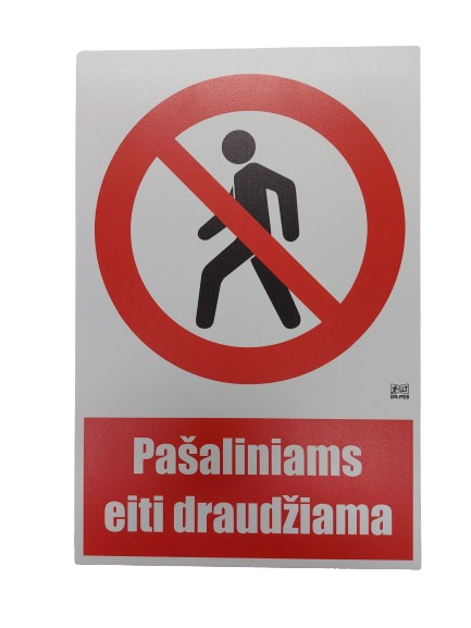 Lentelė Pašaliniams eiti draudžiama PT, 300x200 mm.