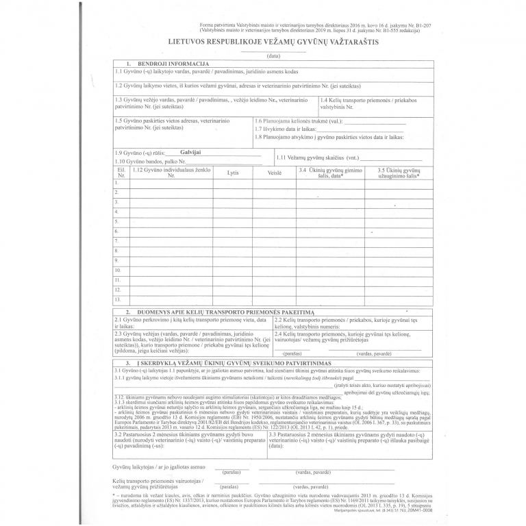 Lietuvos respublikoje vezamų gyvūnų važtaraštis