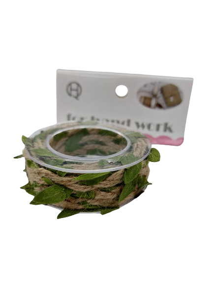 Lininė juostelė su žaliais lapeliais2m