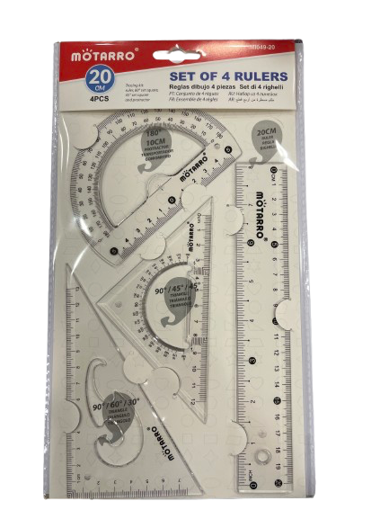 Nepraleiskite progos turėti šį praktišką ir funkcionalų Liniuočių rinkinį 4vnt MOTARRO! Pasirūpinkite savo priemonėmis jau šiandien ir užsisakykite dabar – jūsų kūryba nusipelno geriausių įrankių!