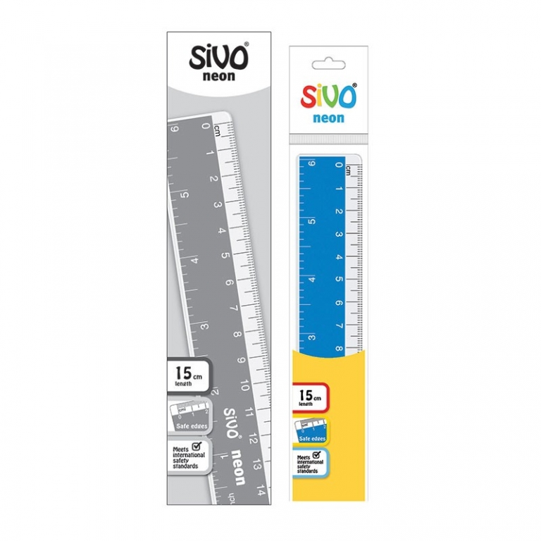 Liniuotė SiVO 15 cm, įvairių neoninių spalvų, 1 vnt