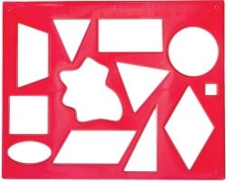 Trafaretas piešimui su geometrinėmis figūromis. Su liniuote.Pagamintas iš plastmasės.