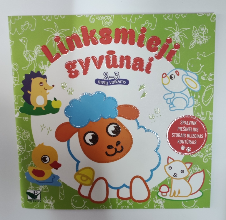 Linksmieji gyvūnai. 2-3metų vaikams.Storais blizgais kontūrais.