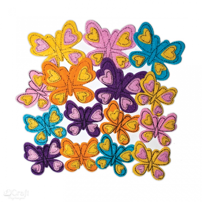 Lipdukai 3D iš veltinio DRUGELIAI 15 vnt.